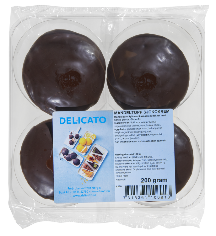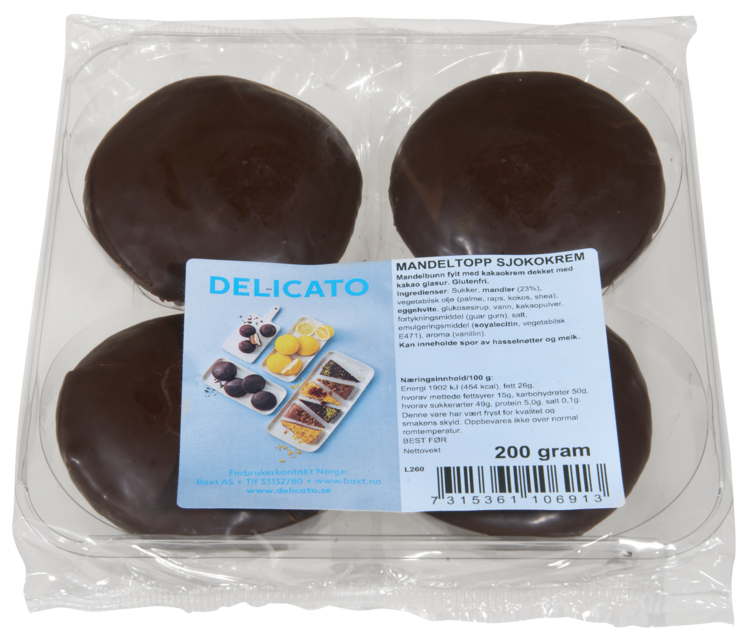 Sukker, mandel (23%), vegetabilsk fett (palme, raps, kokos, shea), eggehvite, glukosesirup, vann, kakaopulver, fortykningsmiddel (guar gum), salt, emulgeringsmiddel (soyalecitin, vegetabilsk E471), aroma (vanillin)