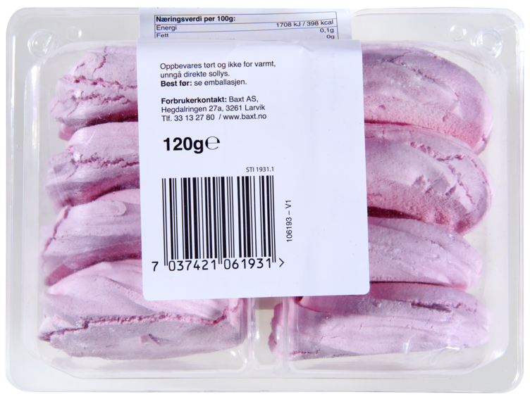 Sukker, eggehvite, glukose sirup, fargestoff (E120), naturlig aroma, surhetsregulerende middel (sitronsyre)