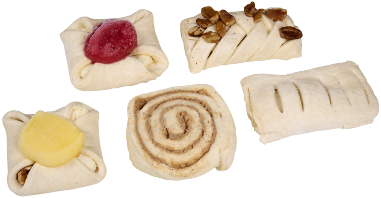 Mini wiener Eple: hvetemel, vann, epler 17%, palmeolje, sukker, rapsolje, gjær, pasteuriserte eggeplommer, modifisert stivelse, veg. emulgatorer (E471, E472e), salt, stabilisatorer (E440, E412), glukose, geleringsmidler (E406), surhetsreg. midler (E330), melbehandlingsmidler (xylanase (hvete), amylase (hvete), E300), naturlig aroma.